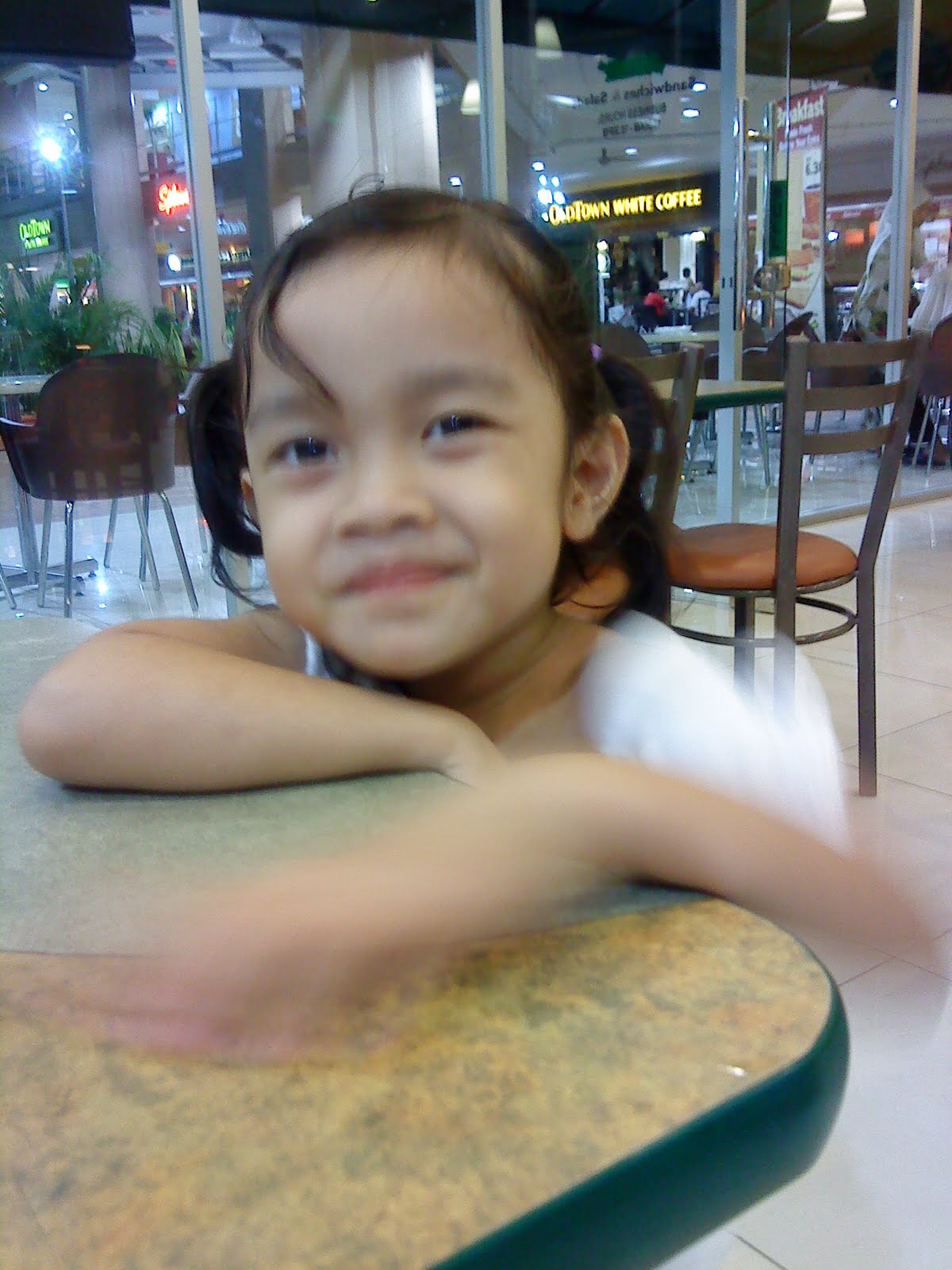 Oh...yer...semalam Cha dok amuk cz tgk gambo I dok makan2 dgn my frens. Dia tanya...'naper x bawak Cha?' Gi maner mahu jawap??? aku just ckp...ibu keja...mmg tak leh bawak Cha. Then Kakak pulak ckp...sedap ker ibu makan kat Zang Toi...alahai...so rasa bersalah occay. Insyaallah...time cuti sek. nanti...I ingat nk bawak my doters jalan2 kat pavillion.